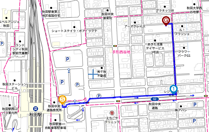 ナイスアリーナ付近より西方向へ入る、ハローワーク本荘の西側エリア |